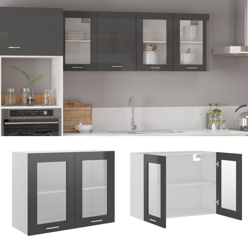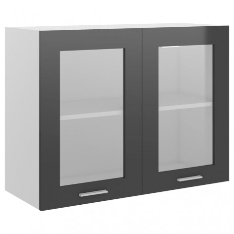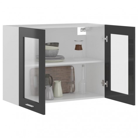 Armadio Sospeso con Vetro Grigio Lucido 80x31x60 cm Truciolato