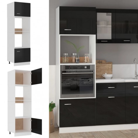 Armadio per Microonde Nero Lucido 60x57x207 cm in Truciolato