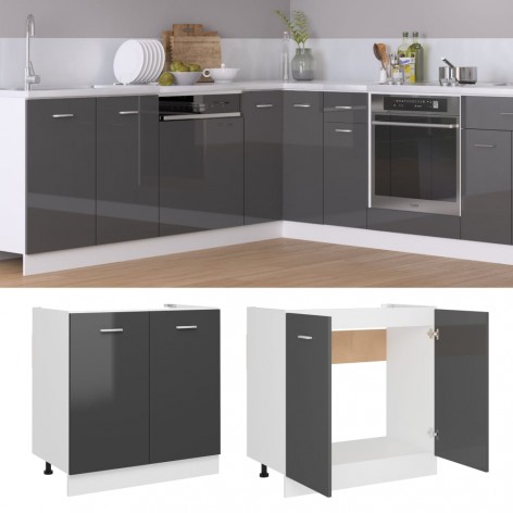 Armadio per Lavabo Grigio Lucido 80x46x81,5 cm in Truciolato