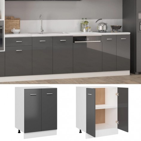 Armadio Inferiore Grigio Lucido 60x46x81,5 cm in Truciolato