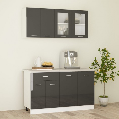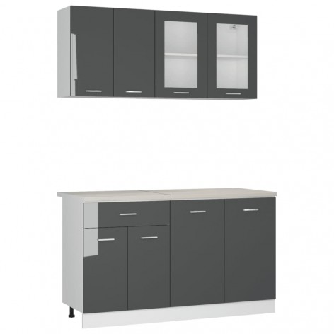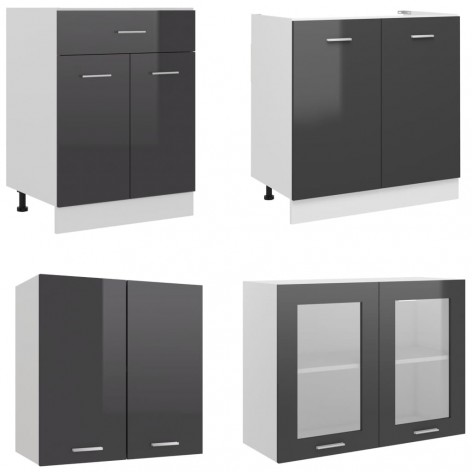 Armadi da Cucina 4 pz con Piano Lavoro Grigio Lucido Truciolato