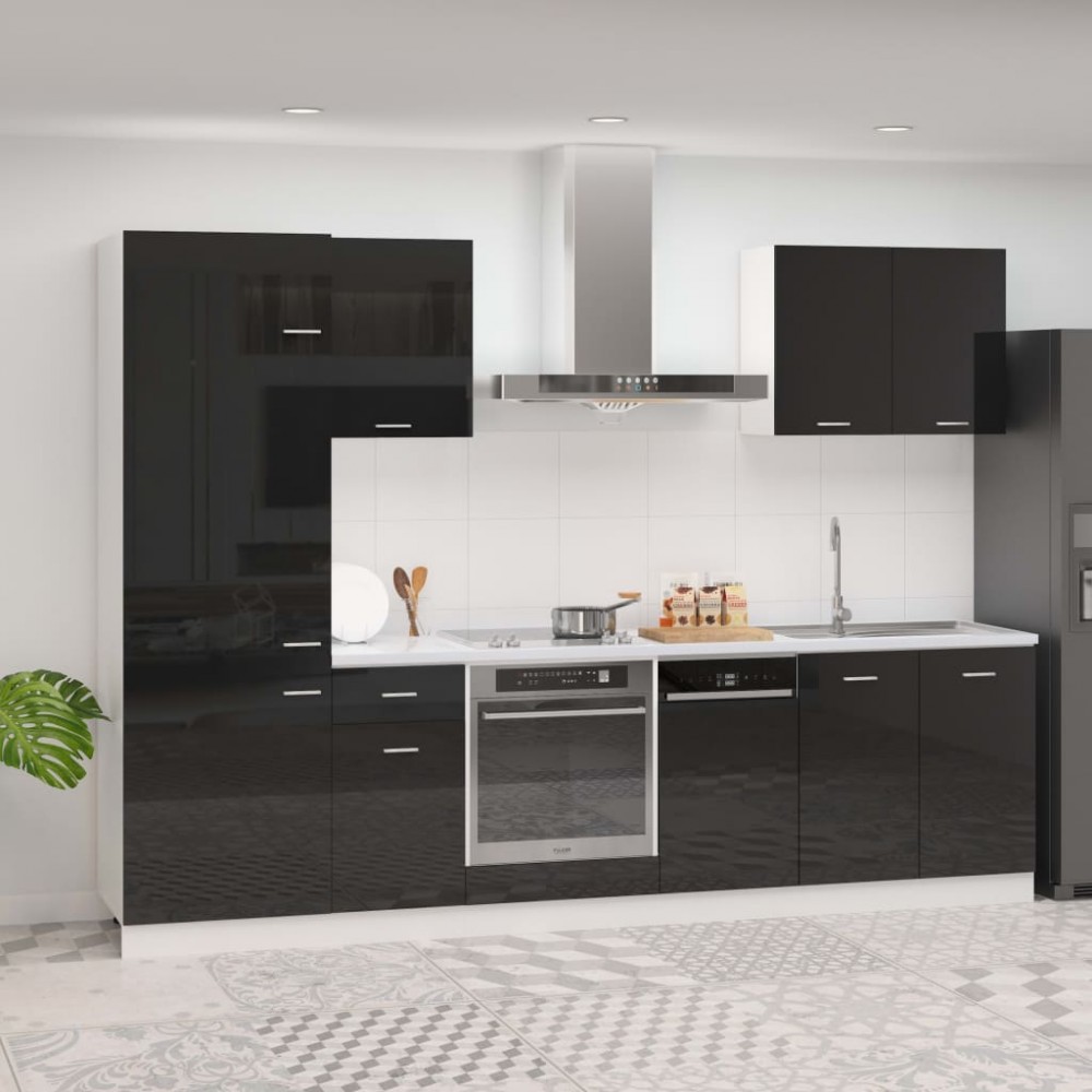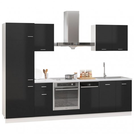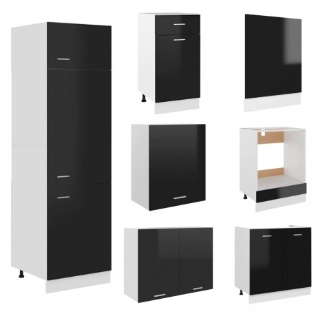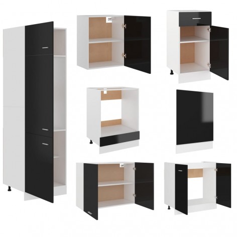 Set Armadi da Cucina 7 pz Nero Lucido in Truciolato
