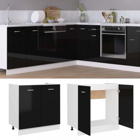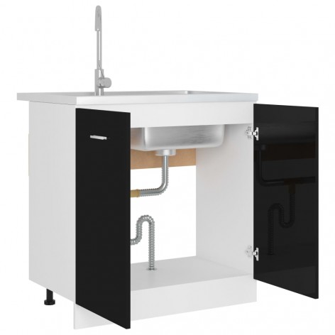 Armadio per Lavabo Nero Lucido 80x46x81,5 cm in Truciolato