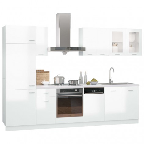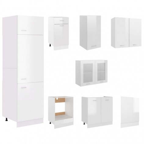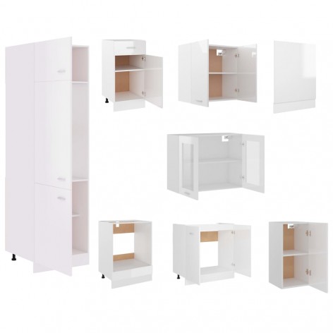 Set Armadi da Cucina 8 pz Bianco Lucido in Truciolato
