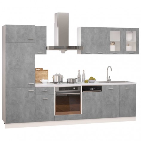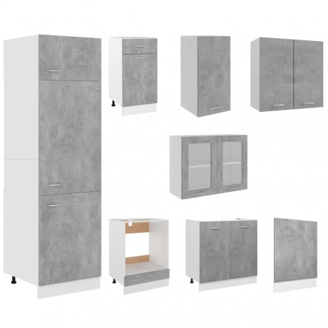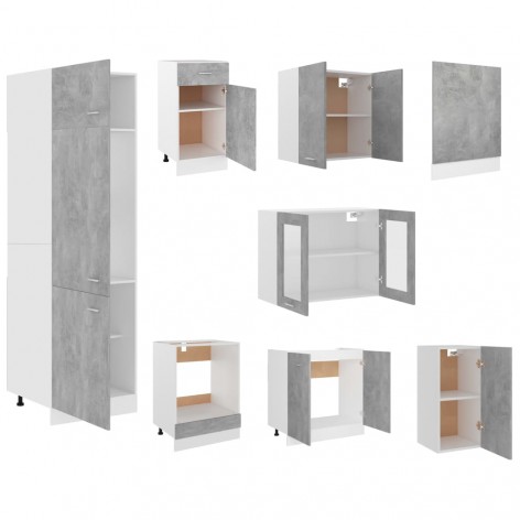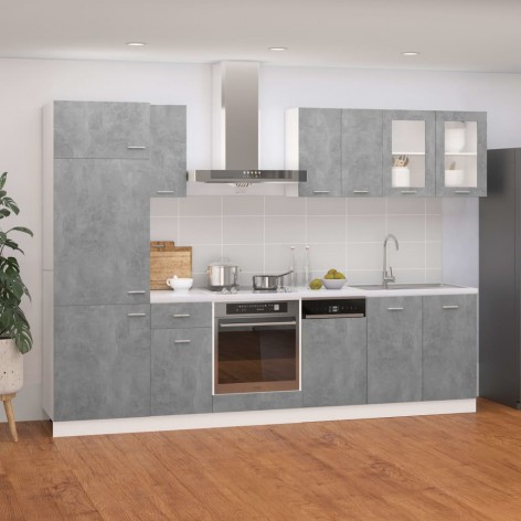 Set Armadi da Cucina 8 pz Grigio Cemento in Truciolato