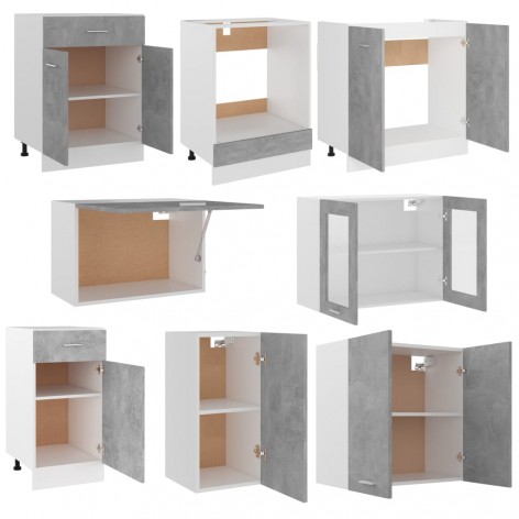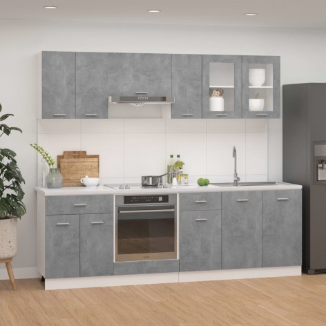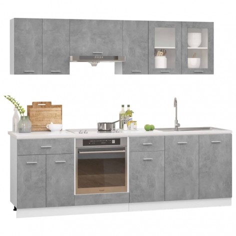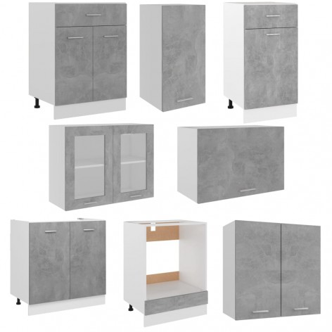 Set Armadi da Cucina 8 pz Grigio Cemento in Truciolato