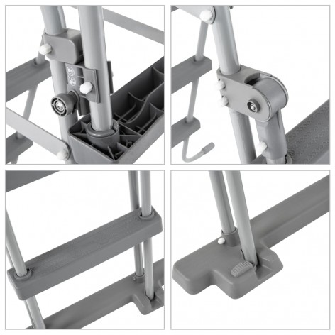 Realizzata in acciaio e rivestimento in PVC blu, questa piscina è resistente e robusta. È anche facile da installare e smontare, il che è conveniente. La scaletta per piscina a 4 gradini Bestway Flowclear può aiutare i nuotatori a entrare e uscire dalla piscina in modo sicuro e conveniente. Questa scala ha una robusta struttura in metallo resistente alla ruggine. I robusti gradini in plastica antiscivolo sono fissati saldamente al telaio, fornendo un modo sicuro per i nuotatori di entrare o uscire dalla piscina. Inoltre, include una piattaforma con piastre di protezione e 2 maniglie rigide. La serie di gradini all'esterno della scala può essere ripiegata per impedire l'uso della scala da parte dei bambini. Inoltre, la scaletta per piscina di sicurezza è adatta per piscine fuori terra con un'altezza massima di 107 cm.