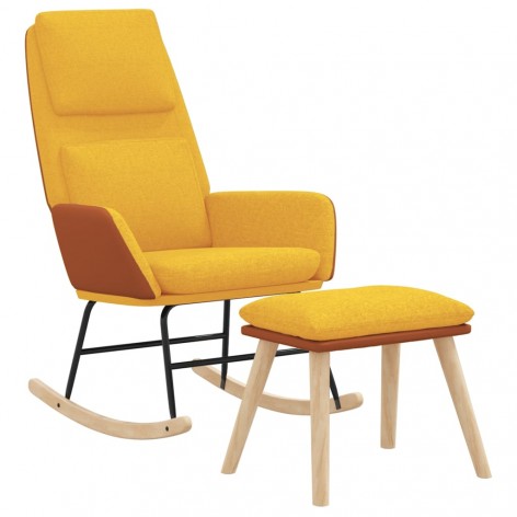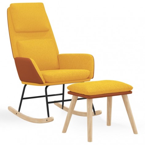Poltrona a Dondolo con Poggiapiedi Giallo Senape in Tessuto