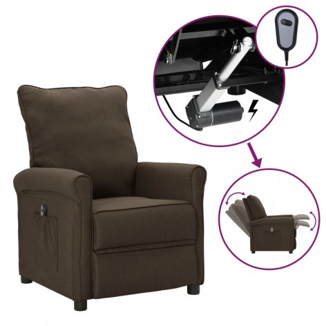 Poltrona Elettrica Reclinabile Marrone Scuro in Tessuto