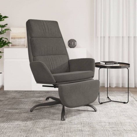 Poltrona Relax con Poggiapiedi Grigio Scuro in Velluto