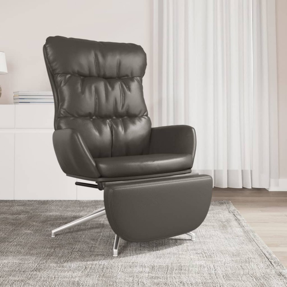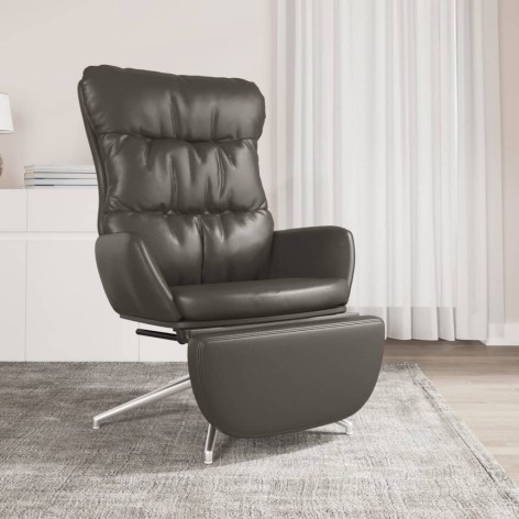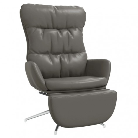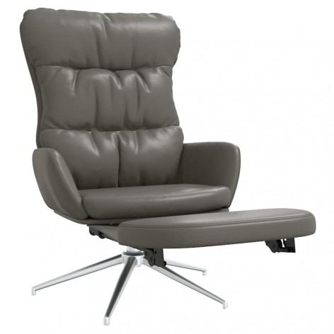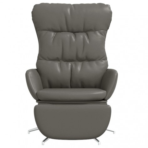 Poltrona Relax con Poggiapiedi Grigia in Pelle e Similpelle