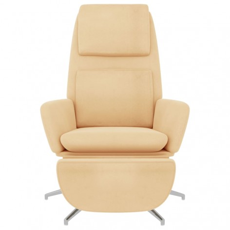 Poltrona Relax con Poggiapiedi Crema in Tessuto di Microfibra