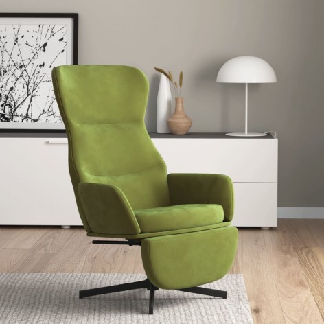 Poltrona Relax con Poggiapiedi Verde Chiaro in Velluto