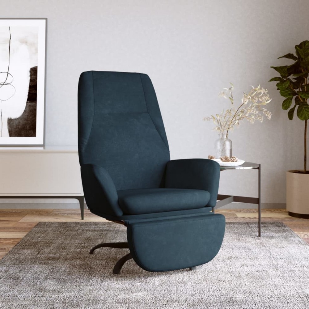Poltrona Relax con Poggiapiedi Blu in Velluto