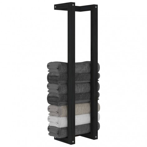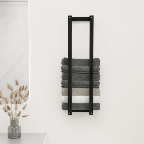 Portasciugamani Nero 23x18x90 cm in Legno Massello di Pino