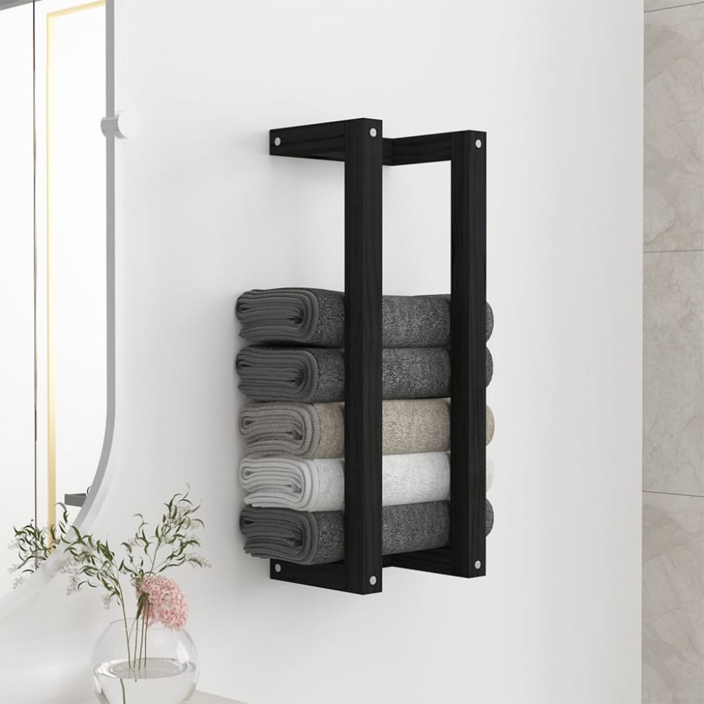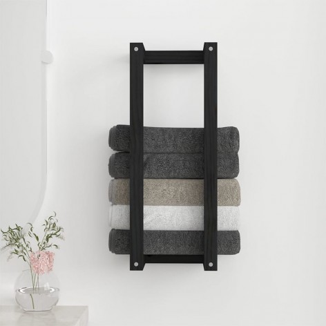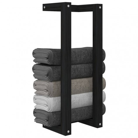 Portasciugamani Nero 23x18x60 cm in Legno Massello di Pino