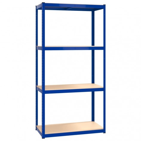 Scaffali a 4 Ripiani 3 pz Blu in Acciaio e Legno Multistrato