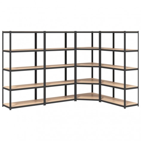 Scaffali 5 Ripiani 4pz Antracite in Acciaio e Legno Multistrato