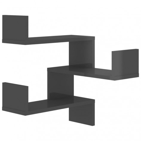 Mensole a Muro Angolari 2pz Grigio Lucido 40x40x50cm Truciolato