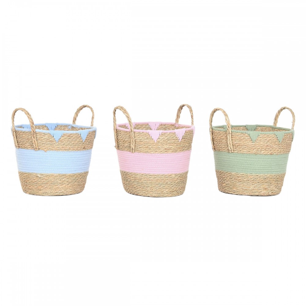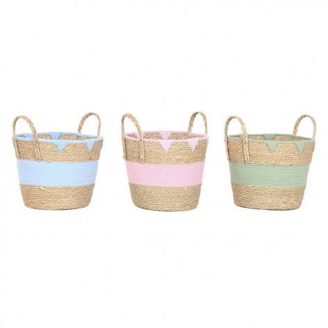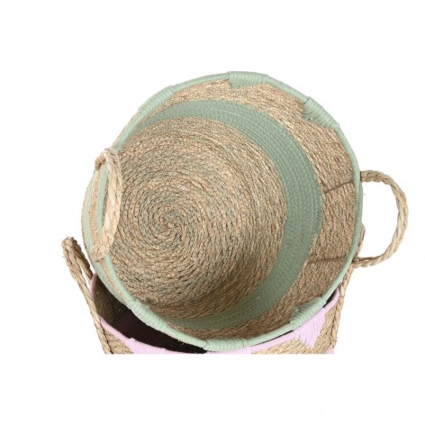 Cesta Decorativa Home ESPRIT Azzurro Verde Rosa Naturale Erba di mare Per bambini (3 Unità)