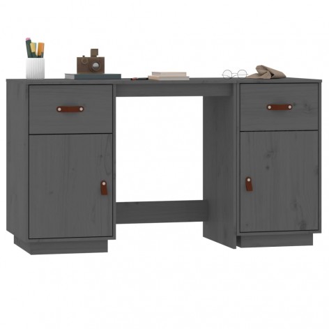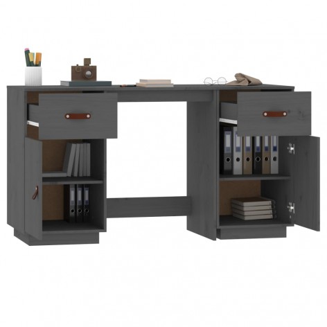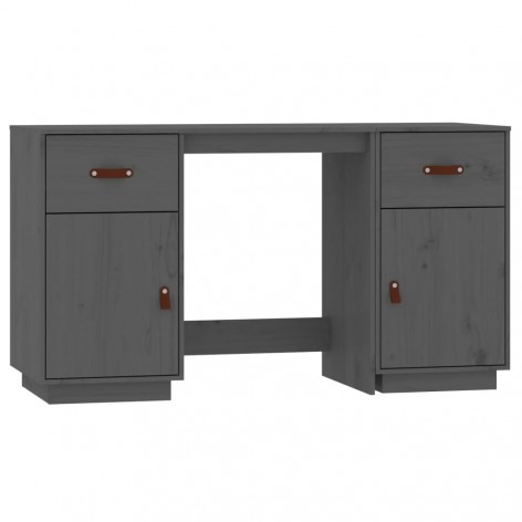 Scrivania con Armadietti Grigio 135x50x75cm Legno Massello Pino