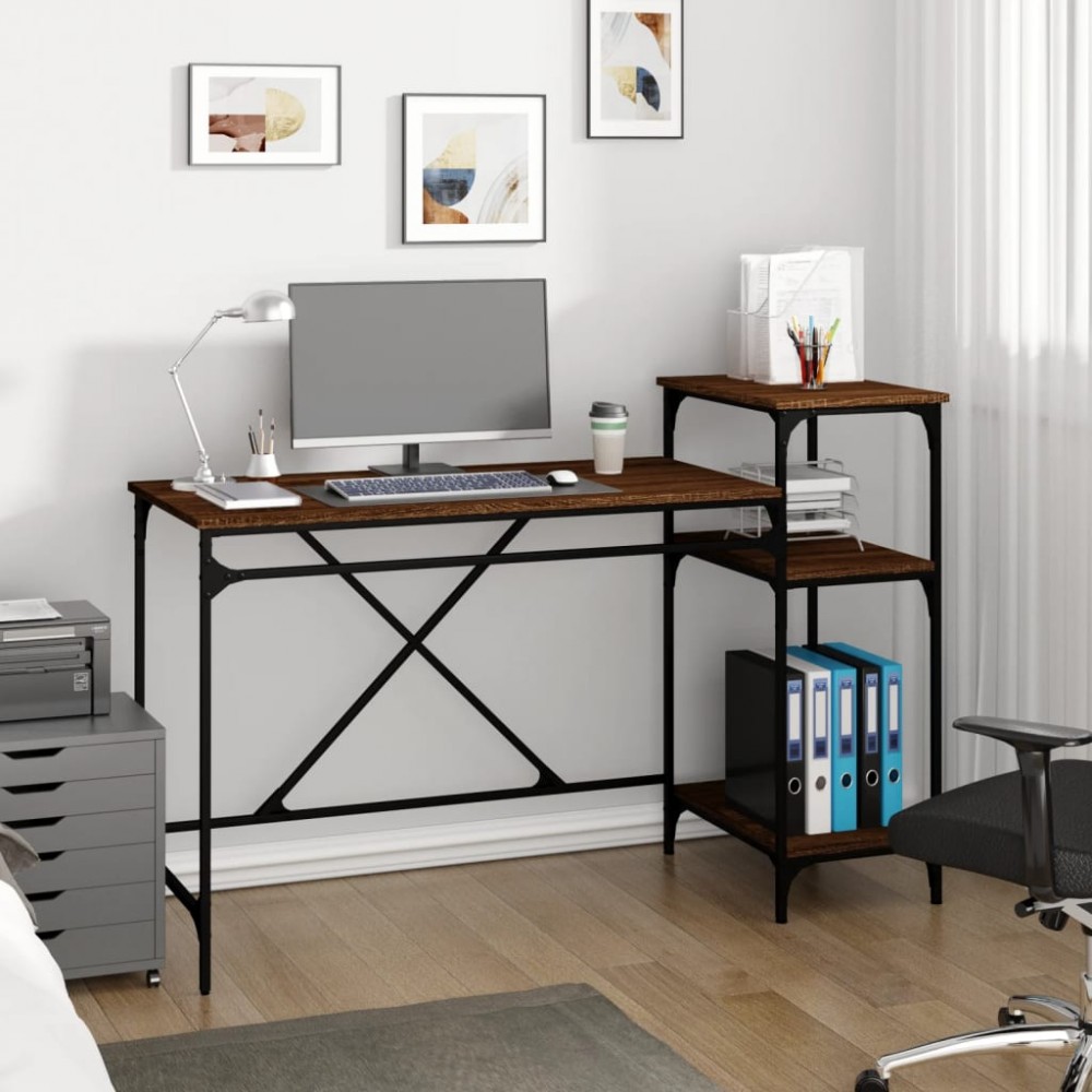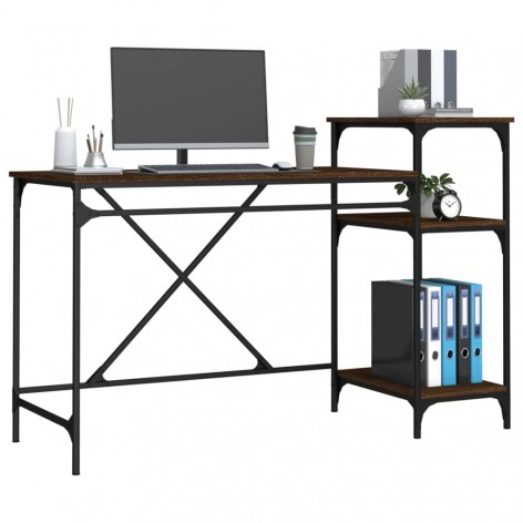 Scrivania Ripiani Rovere Marrone 135x50x90 cm Multistrato Ferro