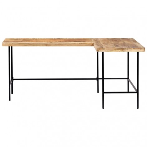 Questa scrivania è realizzata in legno massello di mango, un legno duro dalle ricche venature. Il legno di mango grezzo non solo è caratterizzato dalla sua capacità a sopportare pesanti carichi, ma resiste anche all'usura del tempo. La raffinata artigianalità e le eleganti venature del legno rendono ogni mobile distintivo e leggermente diverso da quello successivo. Inoltre, l'acciaio verniciato a polvere offre maggiore robustezza al tavolo. Questa scrivania presenta un design a L e può essere montata sia sul lato destro che sinistro.