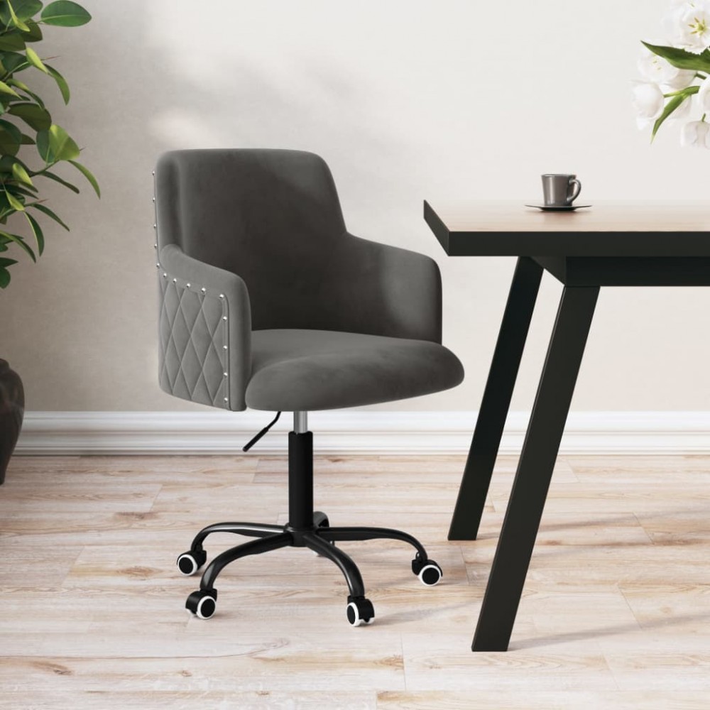 Sedia da Ufficio Girevole Grigio Scuro in Velluto