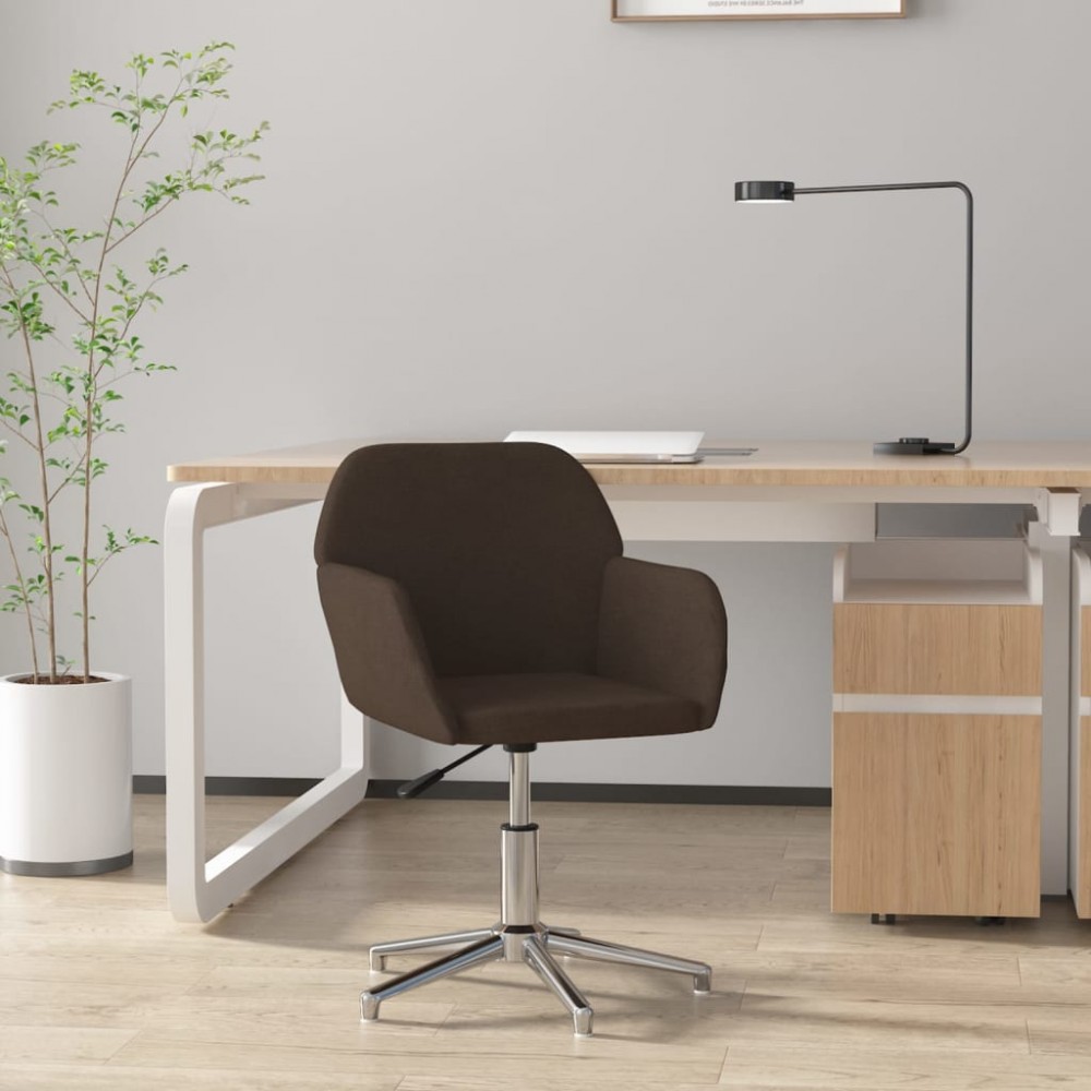 Sedia da Ufficio Girevole Marrone Scuro in Tessuto