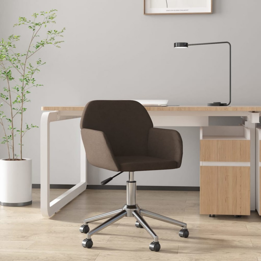 Sedia da Ufficio Girevole Marrone Scuro in Tessuto