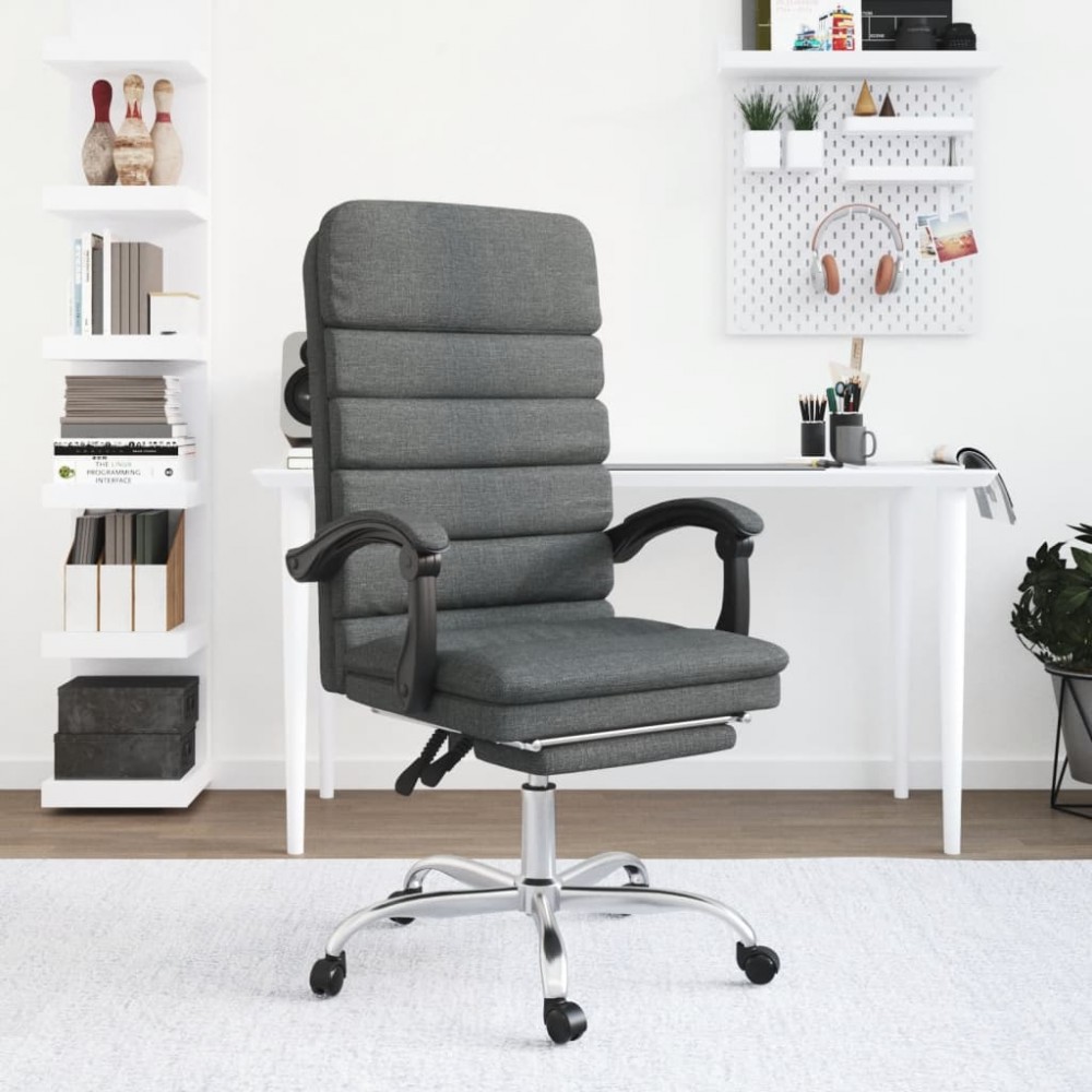 Sedia da Ufficio Massaggio Reclinabile Grigio Scuro in Tessuto