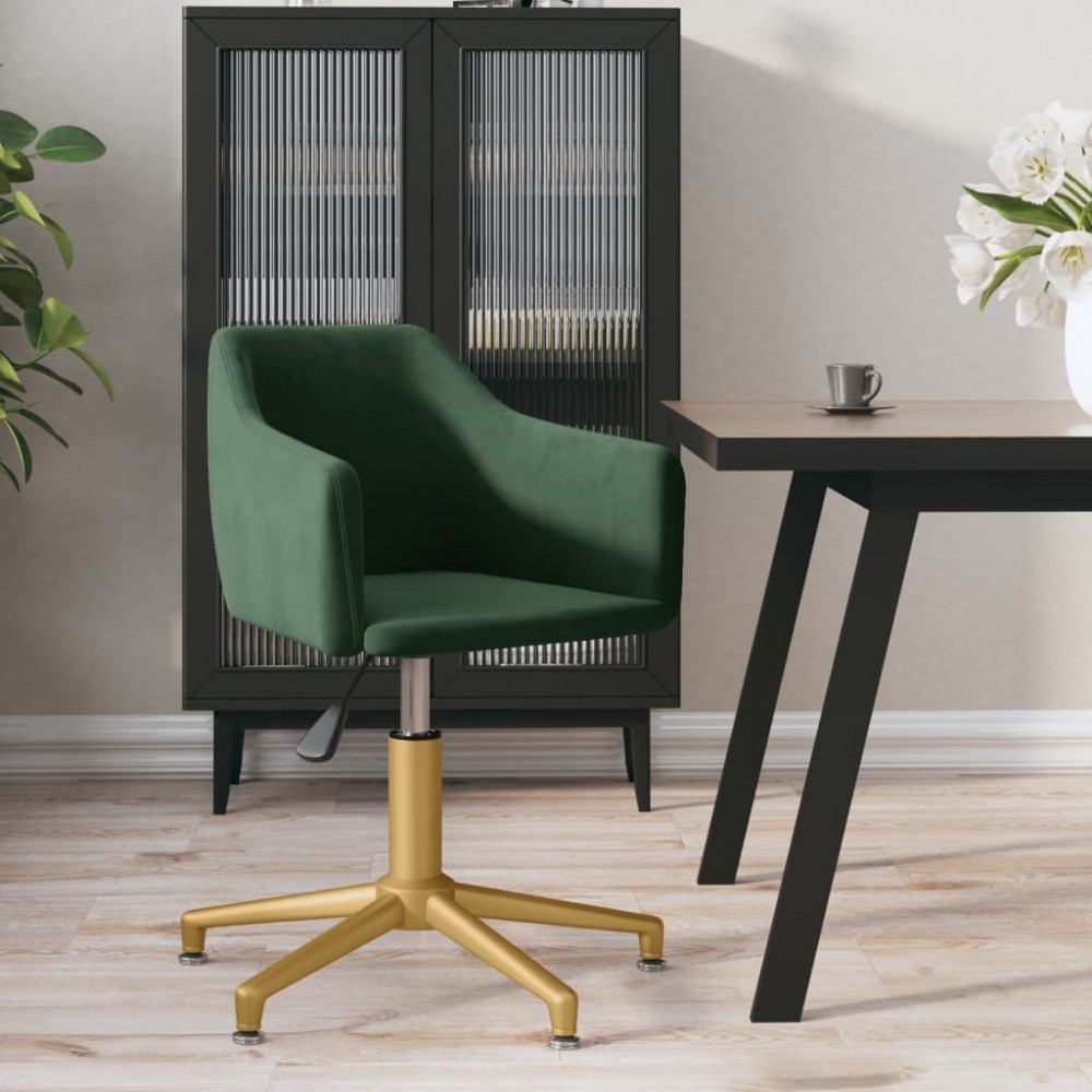 Sedia da Ufficio Girevole Verde Scuro in Velluto