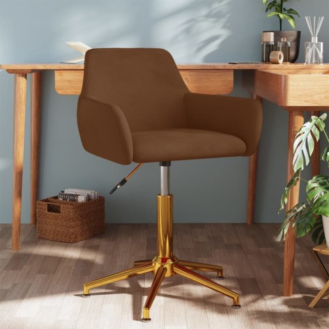 Sedia da Ufficio Girevole Marrone in Velluto