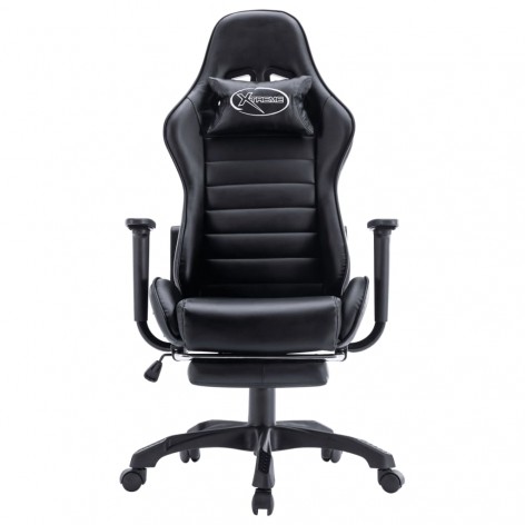 Sedia da Gaming con Poggiapiedi Nera in Similpelle