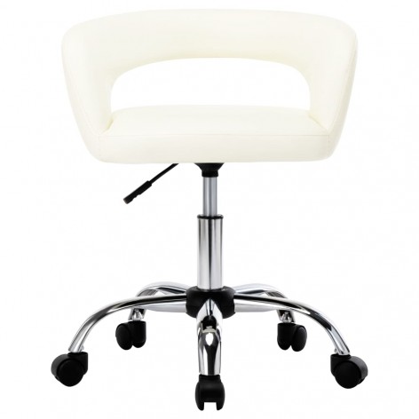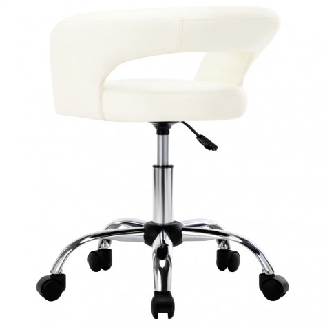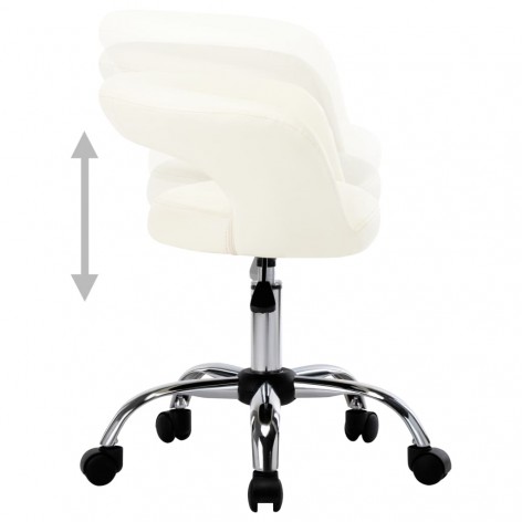 Questa elegante sedia da pranzo girevole è rivestita in similpelle, materiale che la rende morbida durante la seduta. La base in ferro e truciolato fornisce ulteriore solidità. Lo schienale aggiunge ulteriore comfort di seduta. Grazie al meccanismo di sollevamento a gas, l'altezza del sedile della sedia può essere facilmente regolata in funzione delle esigenze dell'utente. Questa sedia da cucina dispone anche di 5 ruote per essere spostata facilmente e può ruotare di 360 gradi con incredibile flessibilità.