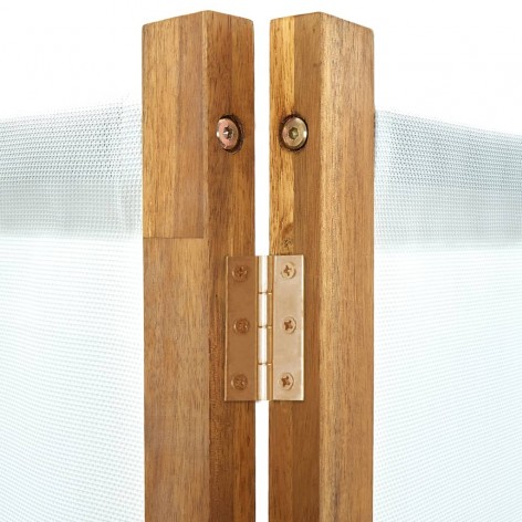 Il telaio di questa parete divisoria è realizzato in legno massello di acacia, un legno duro dalle dense venature. È robusto, durevole e di bell'aspetto. Lo schermo in solido textilene è resistente agli agenti atmosferici e facile da pulire. Il divisorio può essere facilmente ripiegato per risparmiare spazio quando non viene utilizzato. Il prodotto può essere utilizzato sia all'interno che all'esterno.