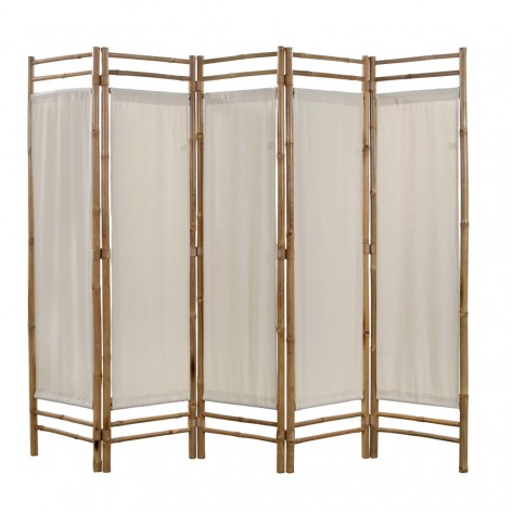 Paravento Pieghevole a 5 Pannelli in Bambù e Tela 200 cm