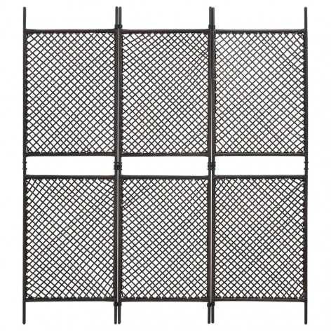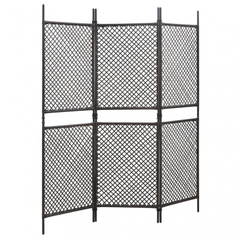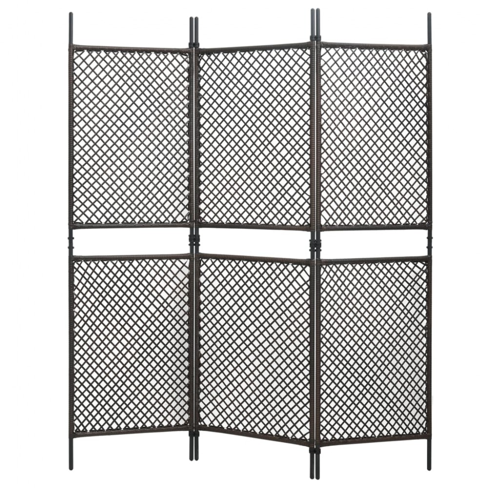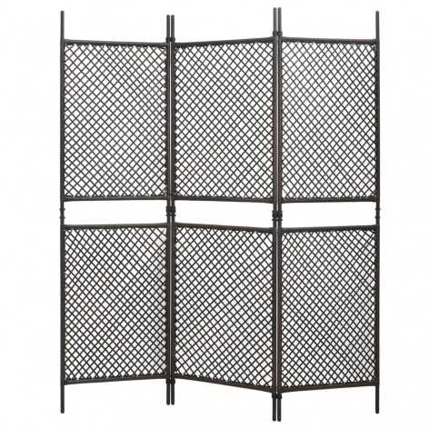 Paravento a 3 Pannelli in Polyrattan Marrone 180x200 cm