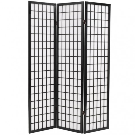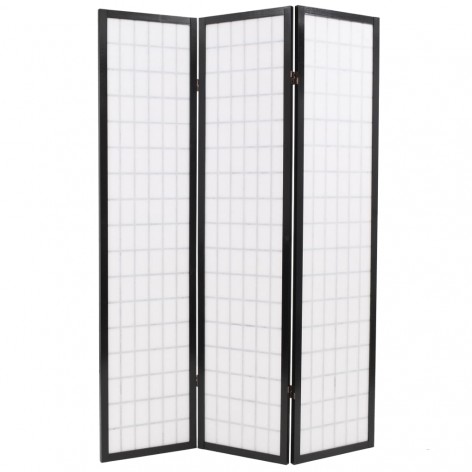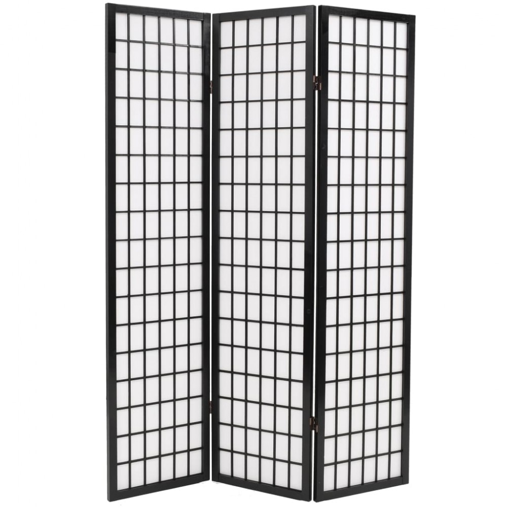 Paravento Pieghevole 3 Pannelli Stile Giapponese 120x170cm Nero