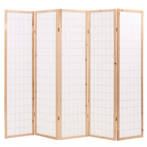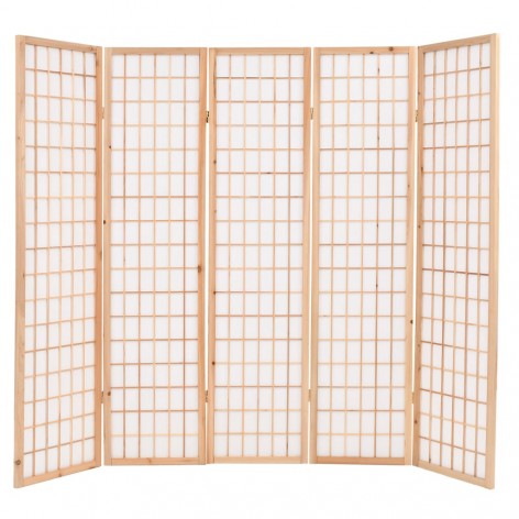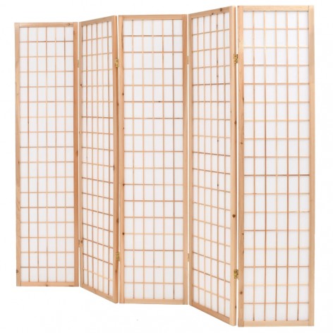Paravento Pieghevole 5 Ante Stile Giapponese 200x170cm Naturale