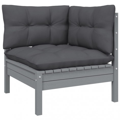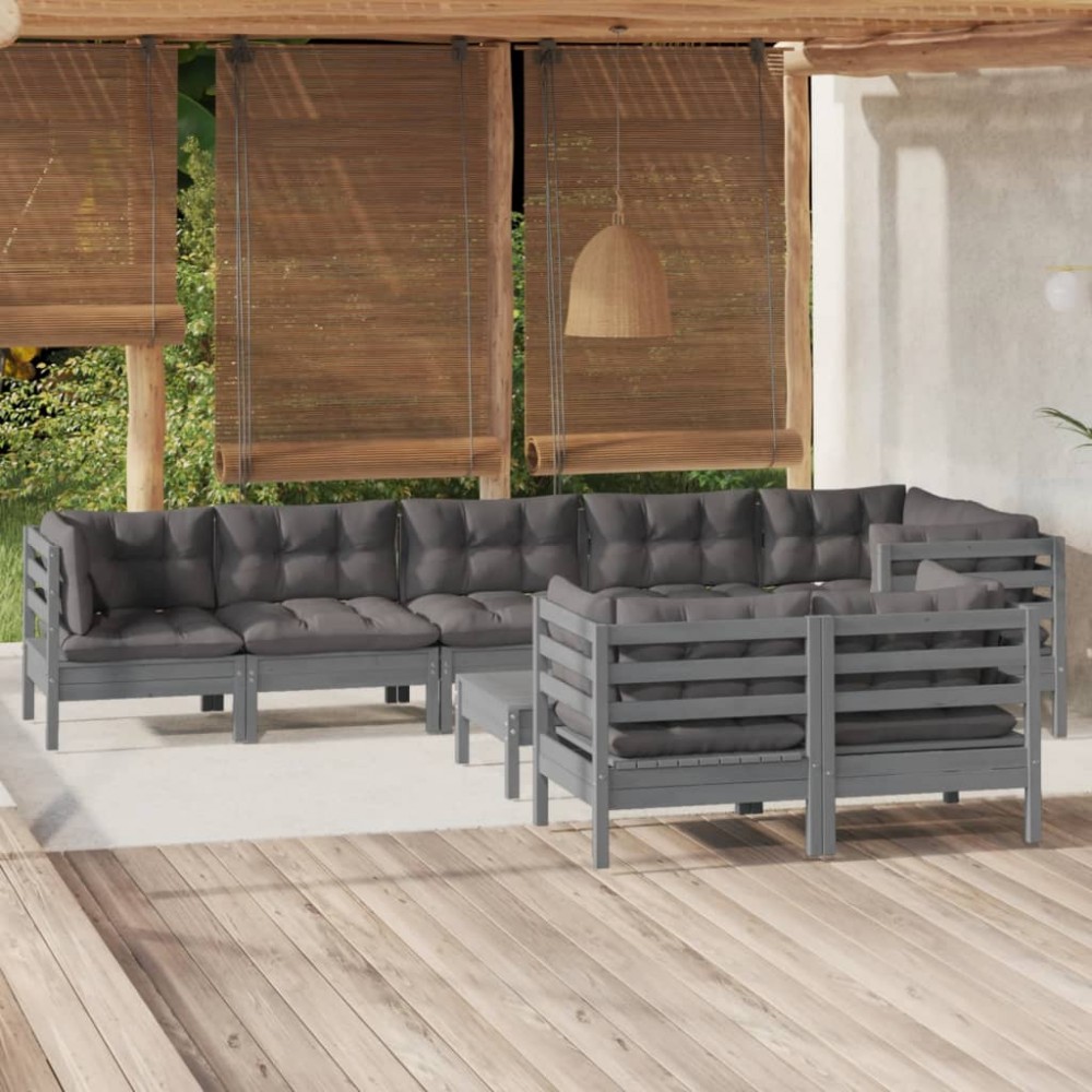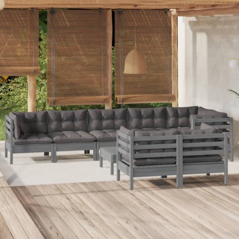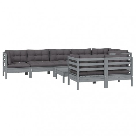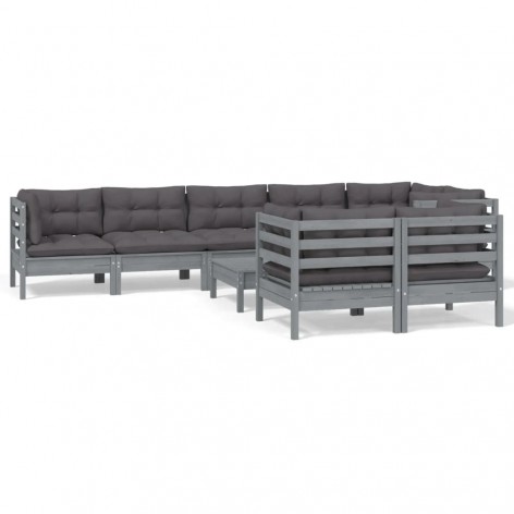 Set Divani da Giardino 9 pz con Cuscini Grigi Massello di Pino