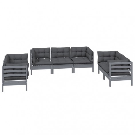 Set Divani da Giardino 7 pz con Cuscini Legno di Pino