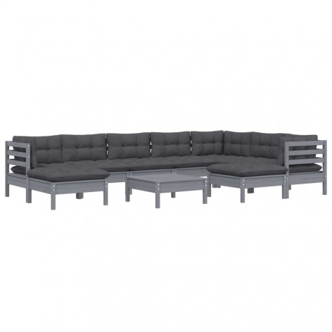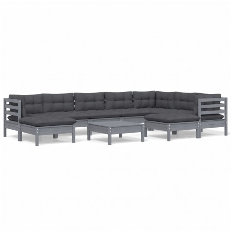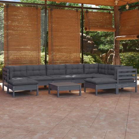 Set Divani da Giardino 10 pz con Cuscini Grigi Massello di Pino