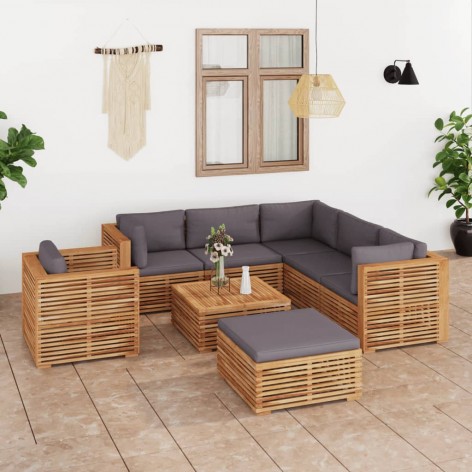 Set Divani da Giardino 8 pz Cuscini Grigio Scuro Legno di Teak