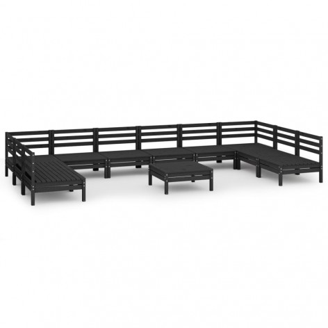 Set Divani da Giardino 11 pz Nero in Legno Massello di Pino