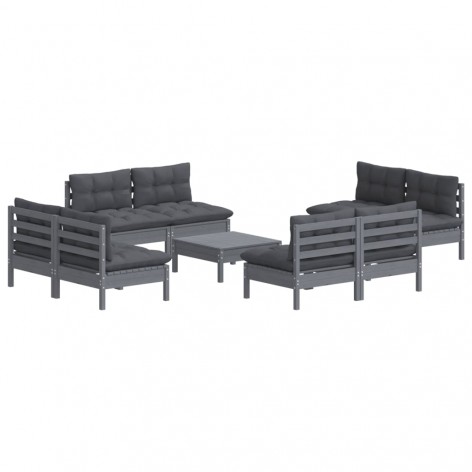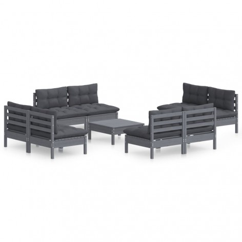 Set Divani da Giardino 9 pz con Cuscini Antracite Legno di Pino