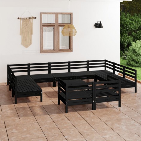 Set Divani da Giardino 12 pz Nero in Legno Massello di Pino