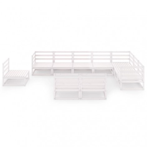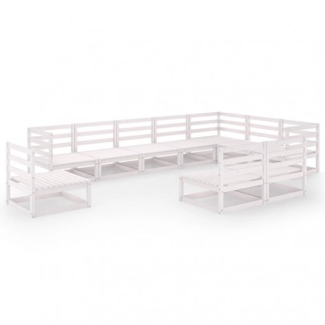 Set Divani da Giardino 10 pz Bianchi in Legno Massello di Pino