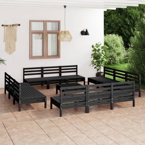Set Divani da Giardino 13 pz Nero in Legno Massello di Pino