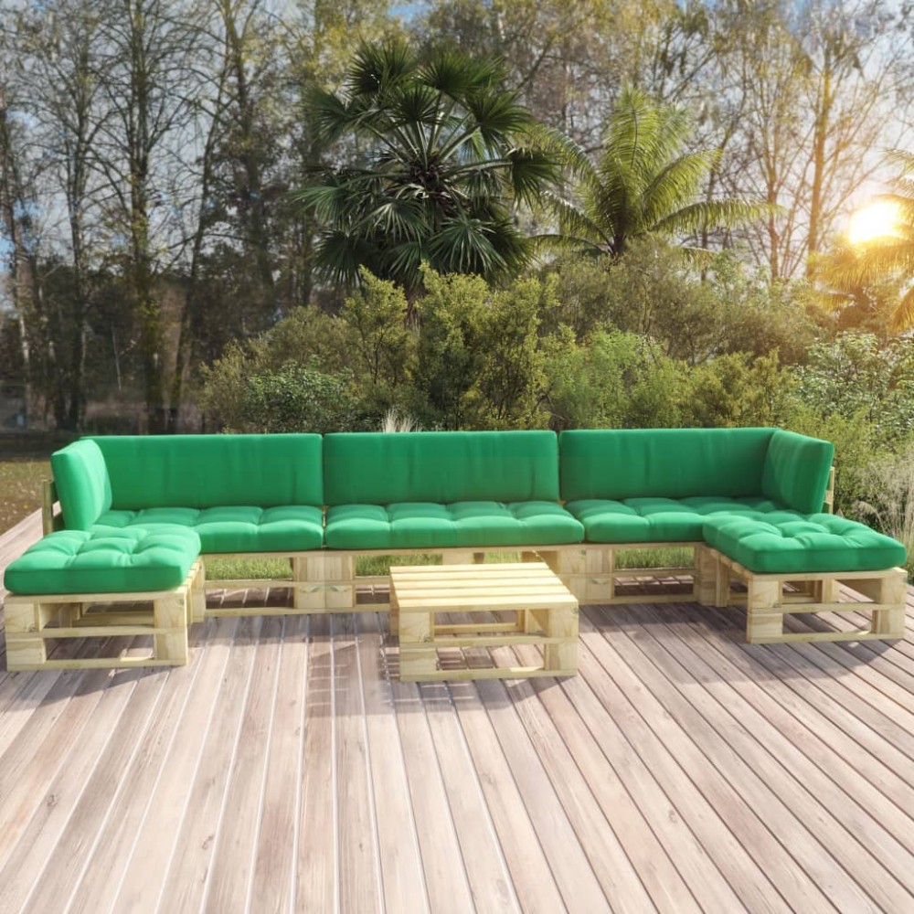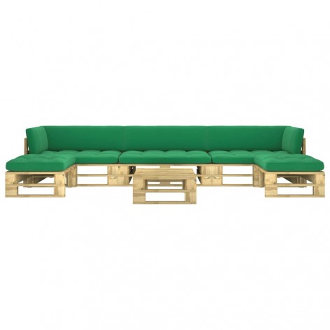 Set di Divani su Pallet 6 pz e Cuscini in Pino Impregnato Verde